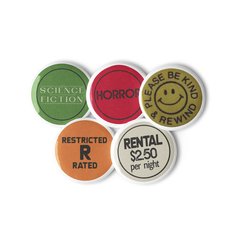 Video Store Sticker Pin Buttons (Set of 5)